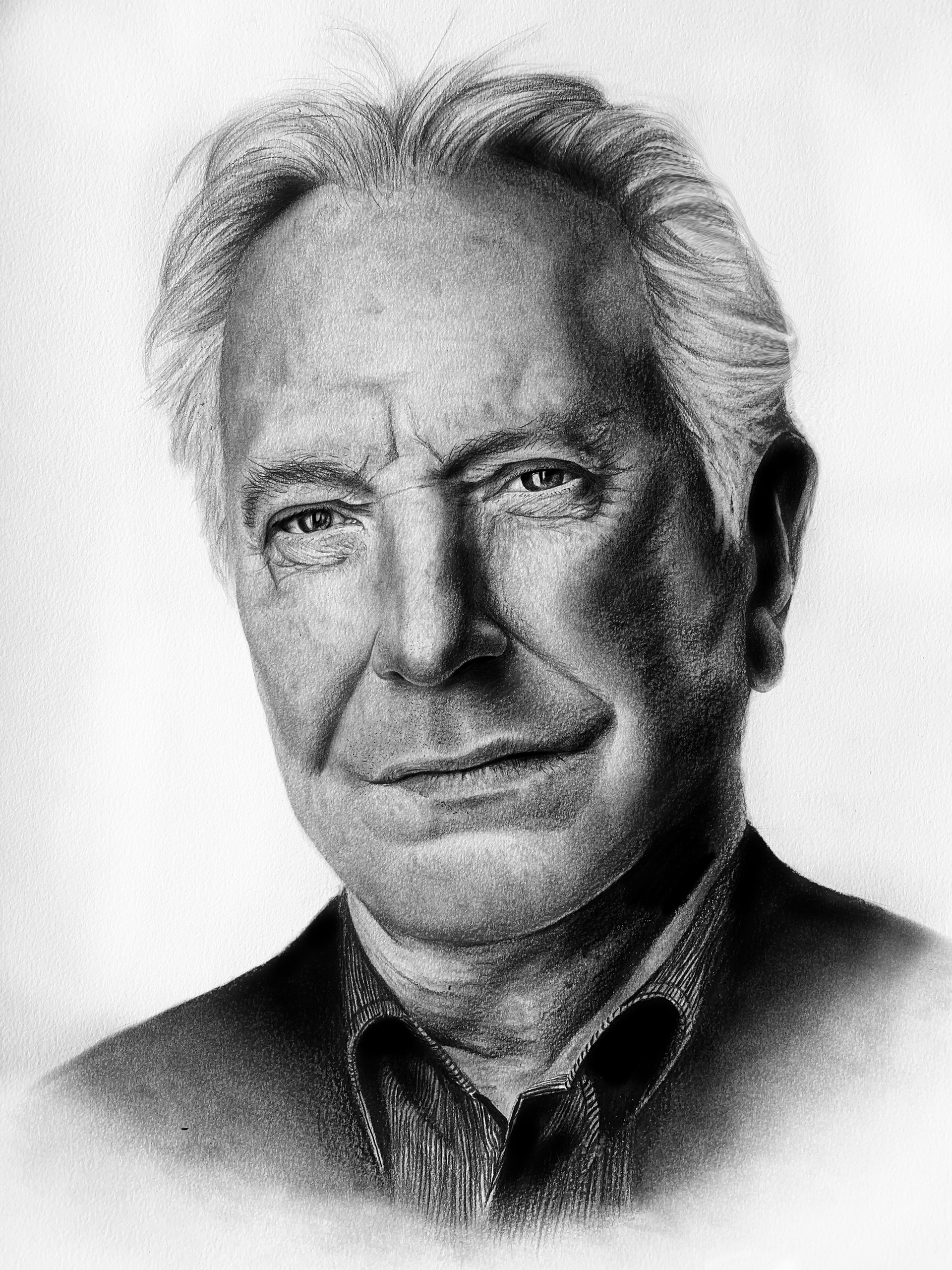 "Portrait of Alan Rickman". Graphite and Charcoal on paper (420 x 297mm) Produced in 17 hours.