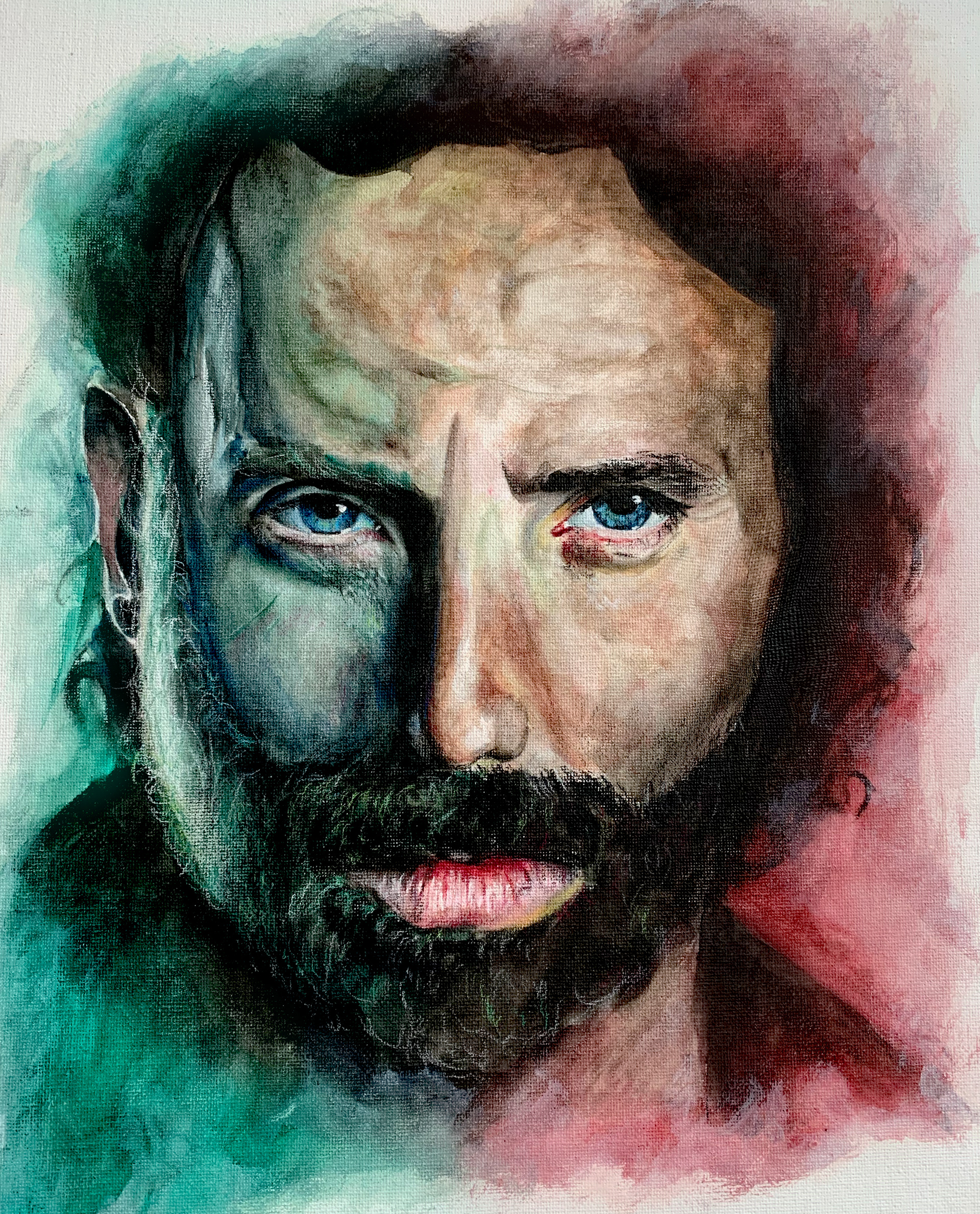 This piece was created in my spare time as I was a big fan of the show 'The Walking Dead'. This painting allowed me to be more expressive and free with the use of colour while still producing a more realistic finish on the facial features.