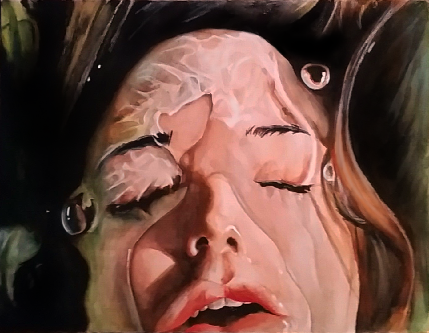Below is a study I did of Reisha Perlmutter's "Merge". This piece challenged me to explore the human portrait and how the addition of water can distort form, light and colour.